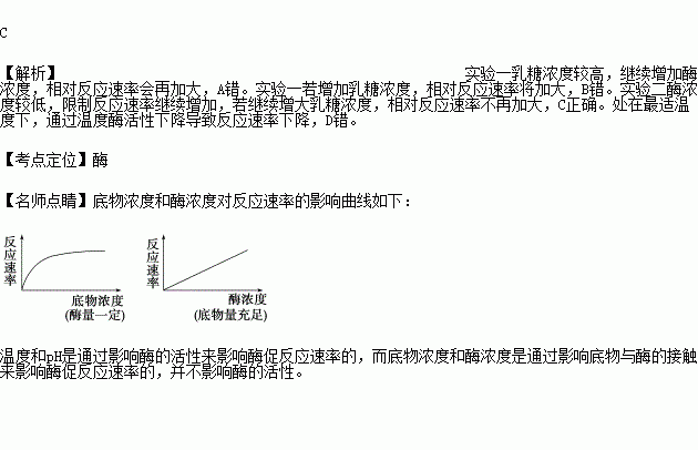 C.实验二若继续增大乳糖浓度,相对反应速率不再加大