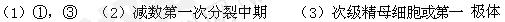 ⑴ 具有同源染色体的细胞有①②③ ⑵ 动物睾丸中可能同时出现以上细胞