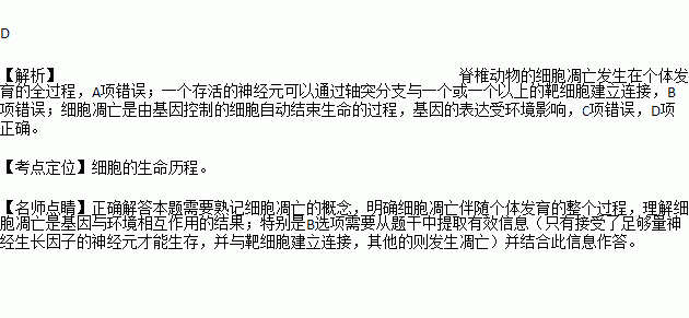 D.神经元凋亡是由基因控制的,自动的细胞死亡