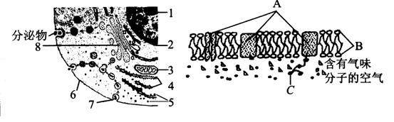 (2009年广州综合测试)下图为高等动物细胞及细胞膜的亚显微结构模式图(局部),请据图回答:
