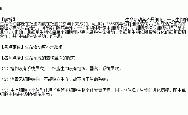 B.SARS病毒没有细胞结构,也能独立完成生命活动