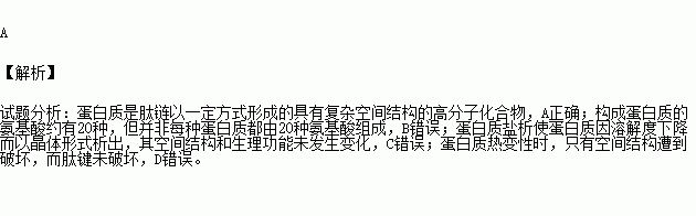 A.蛋白质是肽链以一定方式形成的具有复杂空间结构的高分子化合物