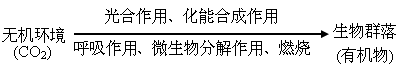 (4)生物群落中的一部分碳返回到大气中,而一部分则以____________形式储存在地层中。碳在无机环境中是以_________和___________的形式存在。