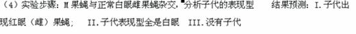 (4)用红眼雌果蝇(XRXR)与白眼雄果蝇(Xr Y)为亲本杂交,在F1群体中发现一只白眼雄果蝇(记为“M”),M果蝇出现的原因有三种可能:第一种是环境改变引起表现型变化,但基因型未变;第二种是亲本果蝇发生基因突变;第三种是亲本雌果蝇在减数分裂时X染色体不分离。请设计简便的杂交试验,确定M果蝇的出现是由哪一种原因引起的。