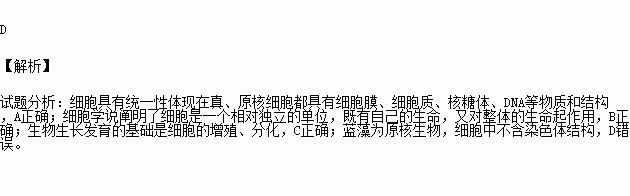 A.细胞都具有细胞膜、细胞质、核糖体、DNA,说明细胞具有统一性