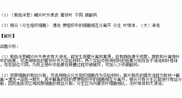 £¨2£©¹Û²ìϸ°ûµÄÓÐË¿·ÖÁÑ£¬¿ÉÑ¡Óà ×÷ΪʵÑé²ÄÁÏ£¬×°Æ¬ÖÆ×÷µÄ²Ù×÷Á÷³ÌΪȡ²Ä¡ú½âÀë¡ú¡úȾɫ¡úÖÆÆ¬£¬ÆäÖнâÀëµÄÄ¿µÄÊÇ £¨2·Ö£©¡£¹Û²ìÓÐË¿·ÖÁÑÐèÕÒµ½ Çø£¬¸Ã²¿Î»Ï¸°ûÓë¹Ü״Ҷϸ°ûÏà±È£¬Ï¸°ûÆ÷ÖÐÎÞ £¨2·Ö£© ¡£