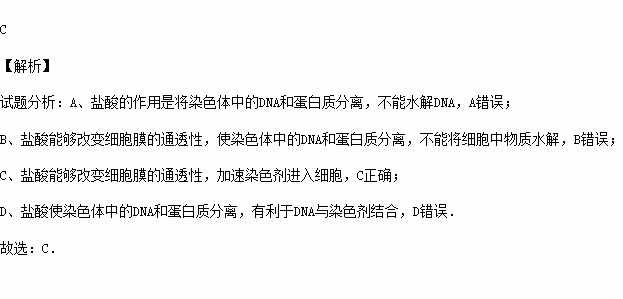 D.使染色体中的DNA与蛋白质分离,有利于蛋白质与染色剂结合