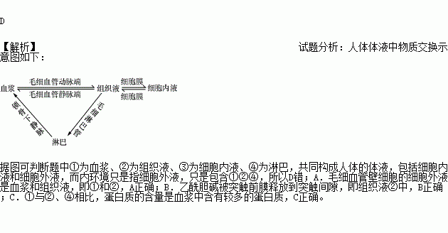 下图为人体体液中物质交换示意图。下列有关叙述不正确的是