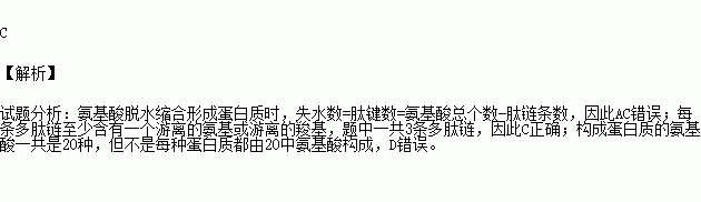 D.合成该蛋白质至少需要20种氨基酸