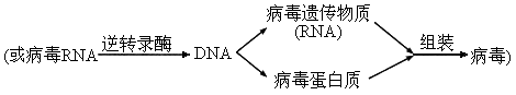 答案: (1)RNA(逆转录) (2)病毒侵入寄主细胞后,利用逆转录酶合成 DNA,然后分别指导合成大量的病毒遗传物质和病毒蛋白质,并装配成完整的病毒颗粒