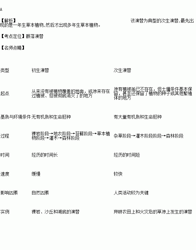 A.次生演替、从一年生草本植物开始