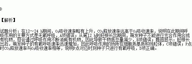 A、在12~24 h期间,呼吸速率逐渐增强,在此期间呼吸作用的主要方式是有氧呼吸