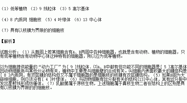 (1)若某细胞含有A、B两图中各种细胞器,则为 细胞。