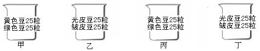 (2)在1号大烧杯上标上雌蕊,装入25粒黄色豌豆(代表基因A)和25粒绿色豌豆(代表基因a),在2号大烧杯上标上雌蕊,装入25粒皱皮豌豆(代表基因B)和25粒光皮豌豆(代表基因b),摇匀后备用。