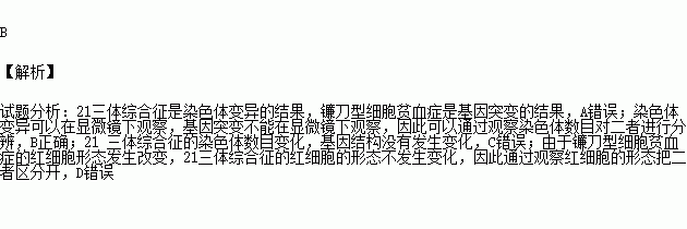 下列关于“21三体综合征”与“镰刀型细胞贫血症”的比较,说法正确的是( )
