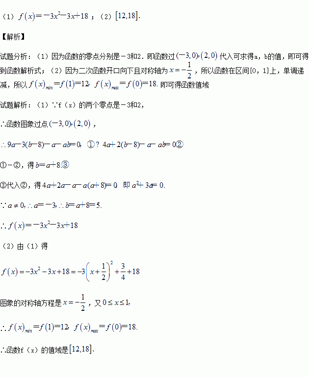 设函数f(x)=ax2+(b-8)x-a-ab的两个零点分别是-3和2.
