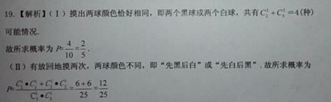 一纸箱中放有除颜色外,其余完全相同的黑球和白球,其中黑球2个,白球3个.(Ⅰ)从中同时摸出两个球,求两球颜色恰好相同的概率;(Ⅱ)从中摸出一个球,放回后再摸出一个球,求两球颜色恰好不同的概率.