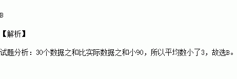 某同学使用计算器求30个数据的平均数时,错将其中一个数据105输人为15,那么由此求出的平均数与实际平均数的差是( ).
