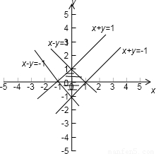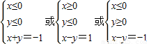【答案】分析:利用绝对值的意义,通过分段讨论,将绝对值符号去掉,将方程转化为几个不等式组,画出不等式组表示的平面区域,判断出区域的形状,求出面积.