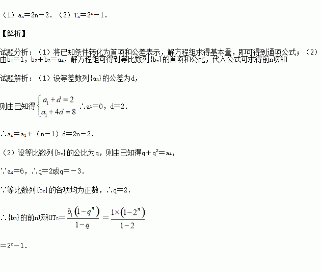 (2)各项均为正数的等比数列{bn}中,b1=1,b2+b3=a4,求{bn}的前n项和Tn.