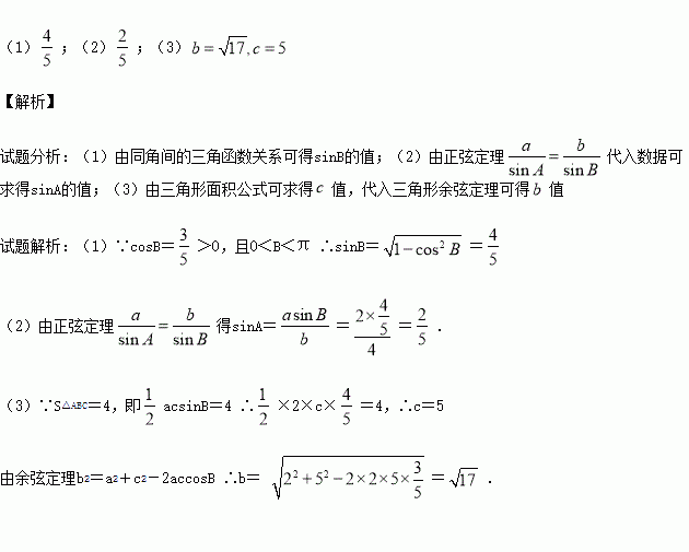 (1)求sinB的值;