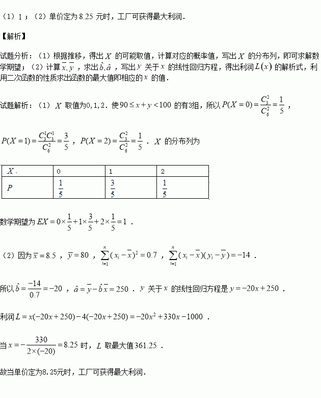 的线性回归方程,并用回归方程预测在今后的销售中,为使工厂获得最大利润,该产品的单价应定为多少元?(利润