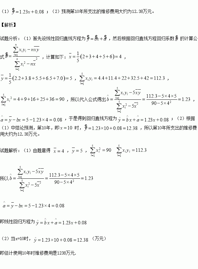 (2)由(1)中结论预测第10年所支出的维修费用.