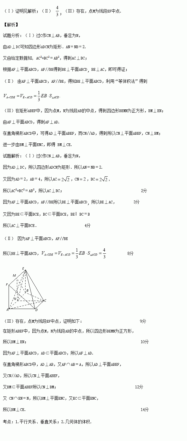 (Ⅲ)线段EF上是否存在一点M,使得BM