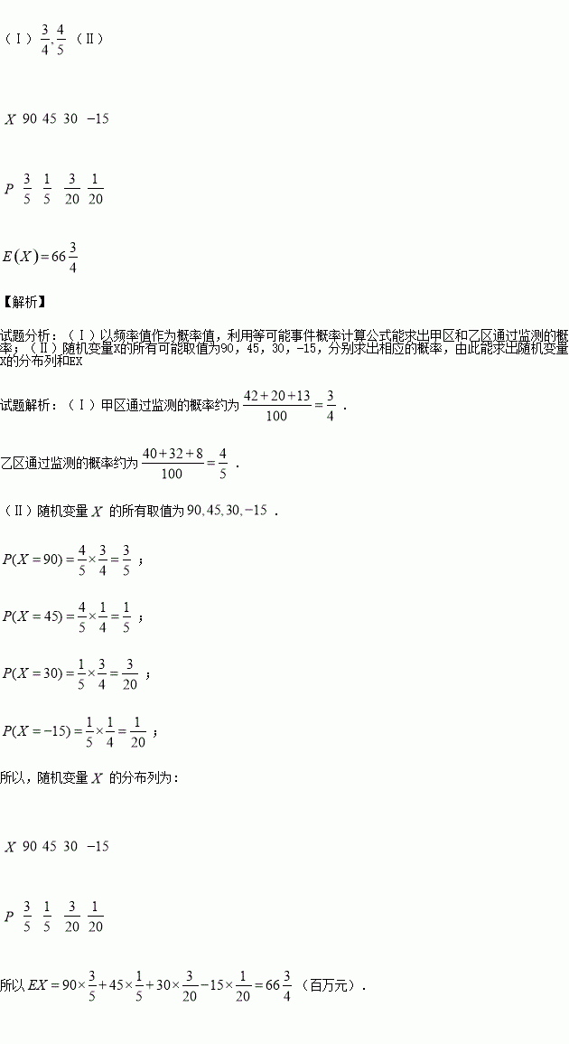 (Ⅰ)以频率值作为概率值,求甲区和乙区通过监测的概率;
