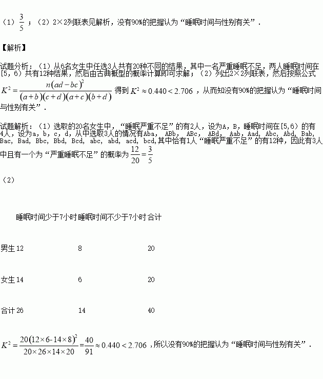 £¨1£©ÏÖ°Ñ˯Ãßʱ¼ä²»×ã5СʱµÄ¶¨ÒåΪ¡°ÑÏÖØË¯Ãß²»×㡱£¬´Ó˯Ãßʱ¼ä²»×ã6СʱµÄÅ®ÉúÖÐËæ»ú³éÈ¡3ÈË£¬Çó´Ë3ÈËÖÐÇ¡ÓÐÒ»ÈËΪ¡°ÑÏÖØË¯Ãß²»×㡱µÄ¸ÅÂÊ£»