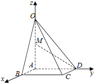 分析 (1)以A为原点,AB为x轴,AD为y轴,AO为z轴,建立空间直角坐标系,利用向量法能求出异面直线OC与MD所成角的正切值.
