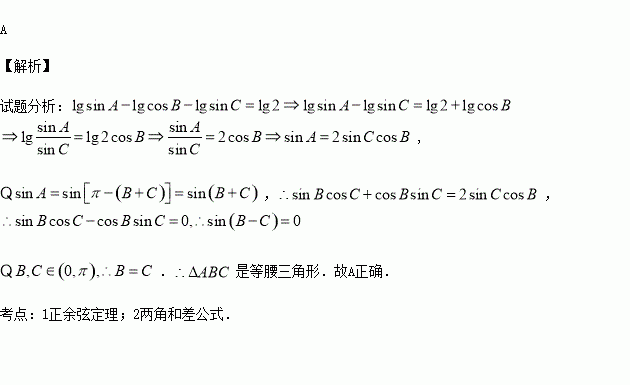 在△ABC中,若lg sin A-lg cos B-lg sin C=lg 2,则△ABC是( )