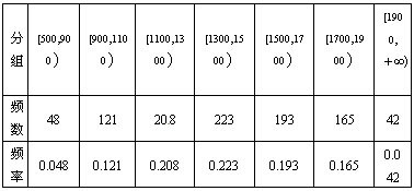 | 某公司在过去几年内使用某种型号灯管1000支,该公司对这些灯管的使用寿命(单位:小时)进行了统计,统计结果如下表所示: | ||||||||||||||||||||||||