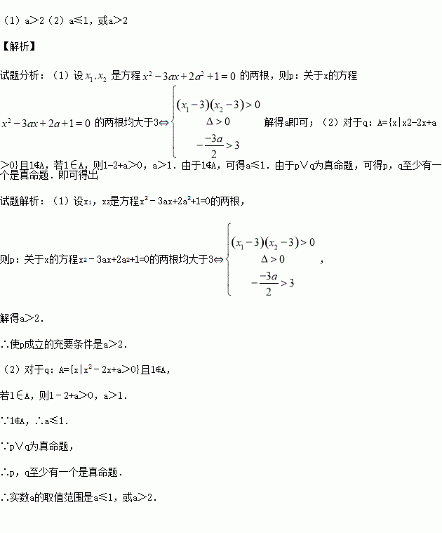 的两根均大于3,q:A={x|x2﹣2x+a>0}且1∉A,