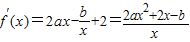 解答:解:由f(x)=ax2-blnx+2x,得
