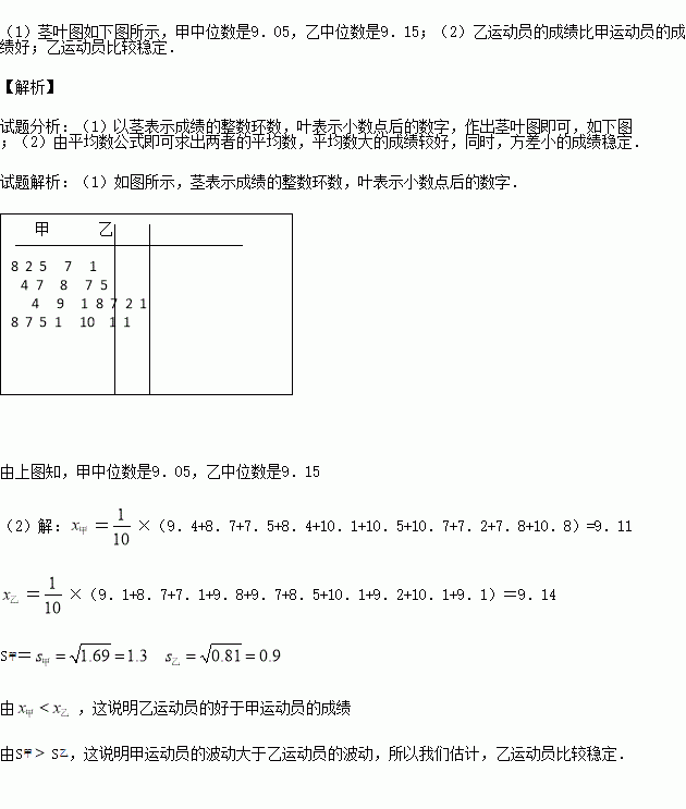 £¨1£©Óþ¥Ò¶Í¼±íʾ¼×¡¢ÒÒÁ½È˵ijɼ¨£»²¢¸ù¾Ý¾¥Ò¶Í¼¹À¼ÆËûÃǵÄÖÐλÊý£»