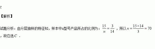 的方法抽出容量为n的样本,样本中A型号产品有15件,那么样本容量