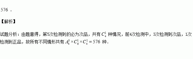 某种产品有4只次品和6只正品,每只产品均不同且可区分,今每次取出一只测试,测试后不放回,直到4只次品全测出为止,则最后一只次品恰好在第五次测试时被发现的不同情形有 种.