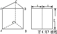 解答:解::∵三棱柱的底面为等边三角形,边长为2,作出等边三角形的高CD后,