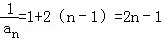 所以知:数列{}是以1为首项,以2为公差的等差数列,