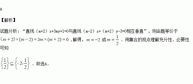 ”是“直线(m+2)x+3my+1=0与直线(m-2)x+(m+2)y-3=0相互垂直”的( )