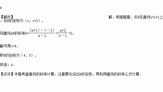 直线AB的斜率为2,其中点A(1,﹣1),点B在直线y=x+1上,则点B的坐标是( )