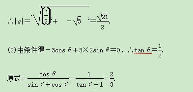 (2)若复数z所对应的点在直线x+3y=0上,求