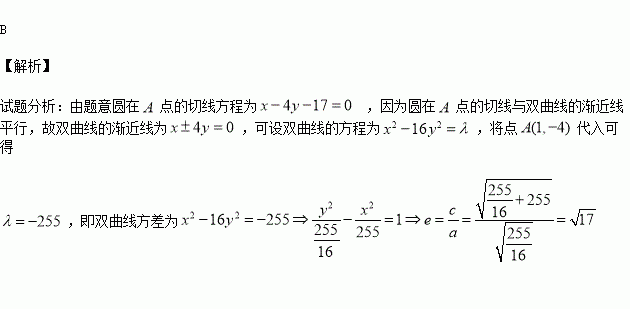 点的切线与双曲线的渐近线平行,则双曲线的离心率为( )