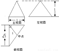 精英家教网已知三棱锥的三视图如图所示,其中侧视图为直角三角形,俯视图为等腰直角三角形,则此三棱锥的体积等于(  )