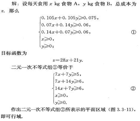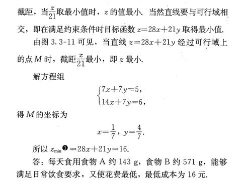 脂肪,花费21元,为了满足营养专家指出的日常饮食要求,同时使花费最低,需要同时食用食物A和食物B多少