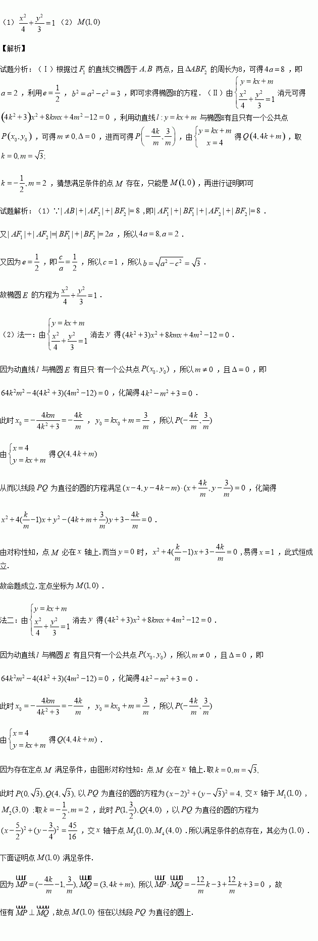 (1)求椭圆