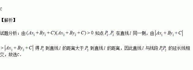 D.直线l与线段P1P2相交