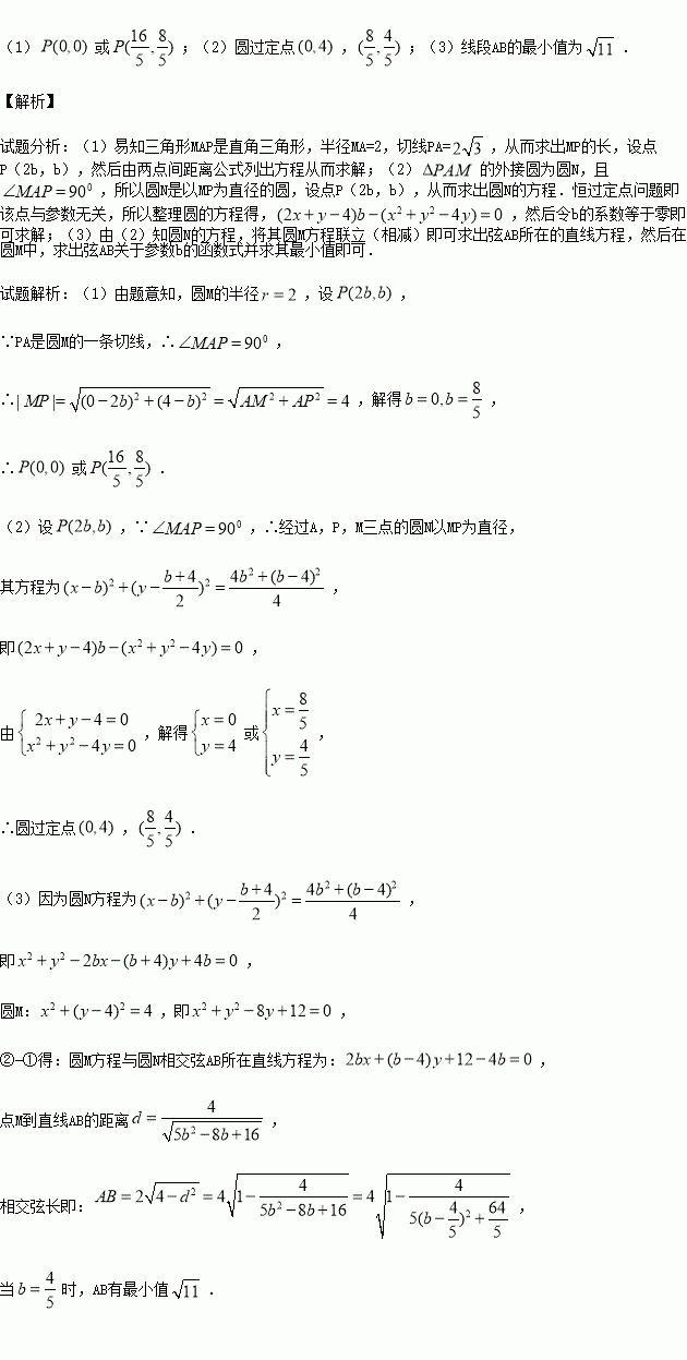 上的一动点,过点P作圆M的切线PA,PB,切点为A,B.