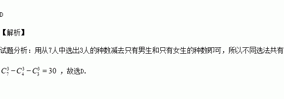 某中学从4名男生和3名女生中推荐3人参加社会公益活动,若选出的3人中既有男生又有女生,则不同的选法共有( )
